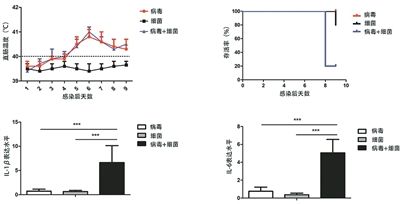 | 猪蓝耳病病毒继发细菌感染导致更剧烈的炎症反应和更高死亡率。 |